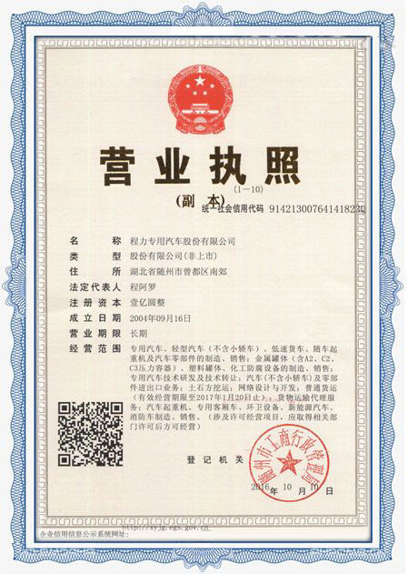程力專用汽車(chē)股份有限公司各類專用汽車(chē)的專業(yè)廠家,大型專用汽車(chē)廠。國(guó)內(nèi)園林綠化、石油化工、市政環(huán)衛(wèi)、壓力容器專用汽車(chē)商。注冊(cè)“程力威”牌,產(chǎn)品代碼:“CLW”。東風(fēng)、解放、福田、重汽、陜汽、北奔等公司的重要合作伙伴,主要從事各類專用汽車(chē)的業(yè)務(wù),同時(shí)也銷售各大型廠家的整車(chē)及配件。公司擁有自行出口權(quán),其主導(dǎo)品種有灑水車(chē)系列、吸污(吸糞)車(chē)系列、垃圾車(chē)系列、掃地車(chē)系列、油罐加(運(yùn))油車(chē)系列、高空作業(yè)車(chē)系列、清障車(chē)系列、隨車(chē)吊系列、自卸車(chē)系列、教練車(chē)系列、半掛車(chē)系列、化工車(chē)系列、消防車(chē)系列、廂式(冷藏車(chē))系列、牽引車(chē)系列、粉粒物料車(chē)系列、攪拌車(chē)系列、壓力容器系列、專用車(chē)配件等十八大系列300多個(gè)品種車(chē)型。同時(shí)批發(fā)東風(fēng)、解放、楚風(fēng)各種二類底盤(pán)。
